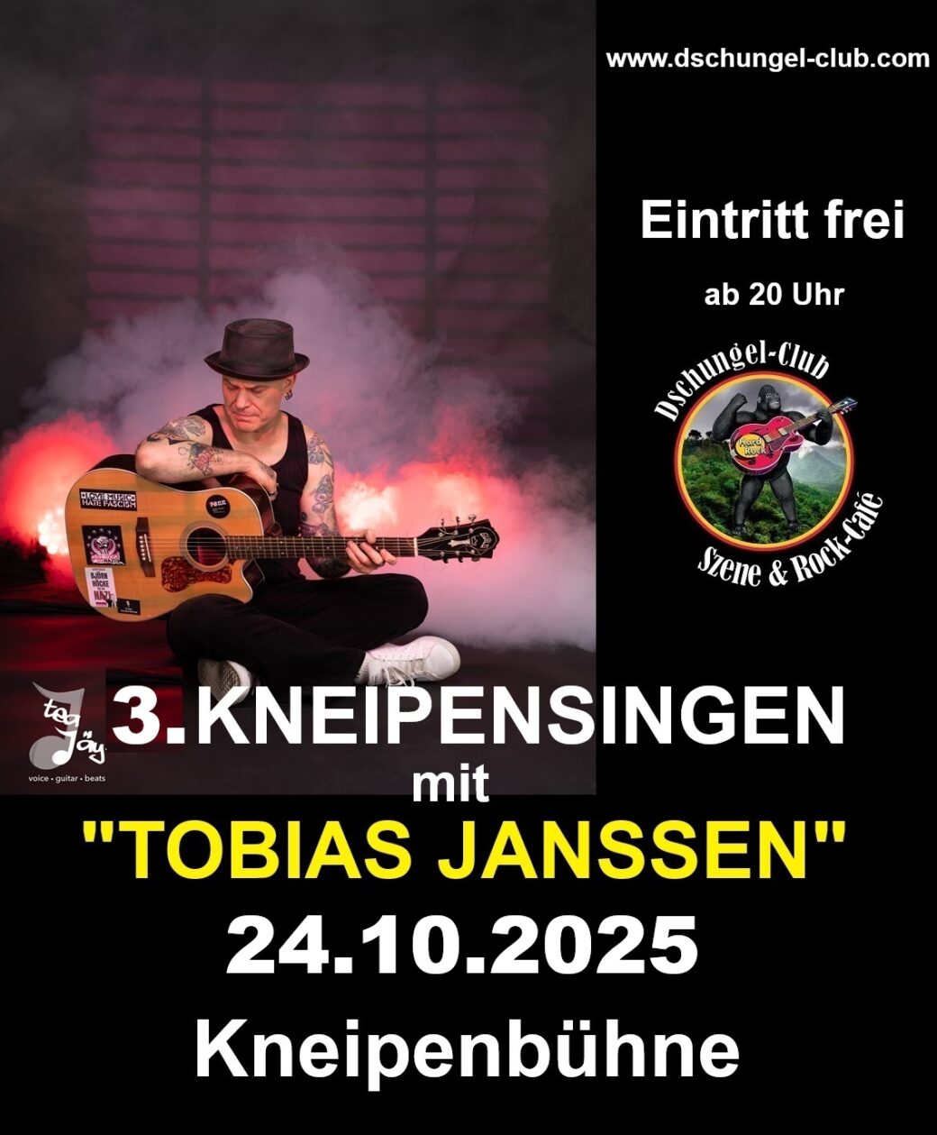 3. “KNEIPENSINGEN“ mit „TOBIAS JANSSEN“ am 24.10.2025 ab 20:00 Uhr – Eintritt frei