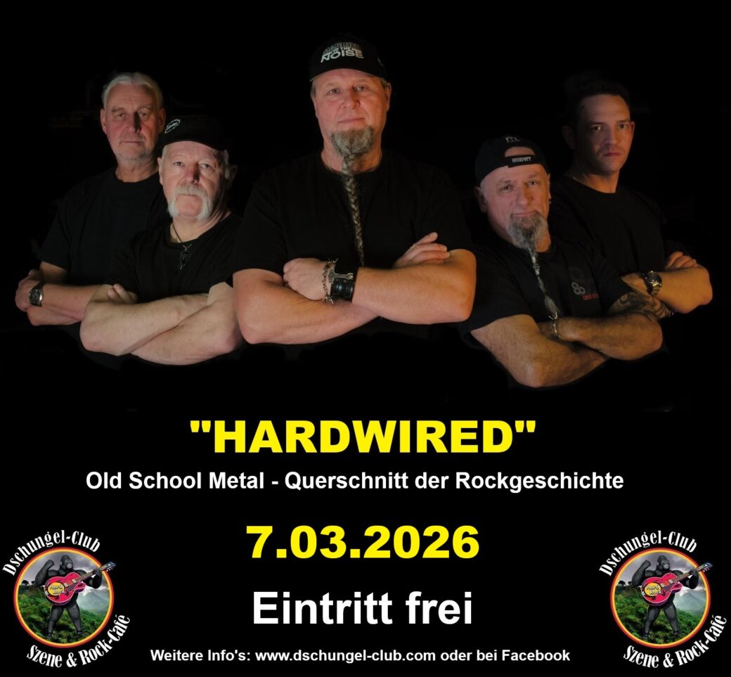 „HARDWIRED“ – Oldschool-Metal-Cover – Live am 7.03.2026 ab 20:00 Uhr im Dschungel-Club Moers – Eintritt frei